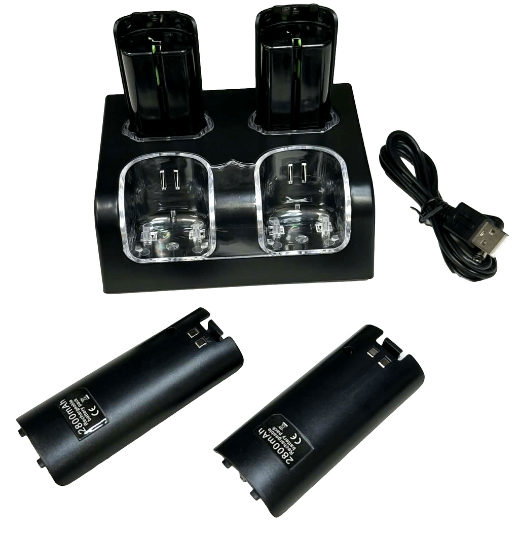 4 in 1 Dual Controller Charging Station Dock Set for Nintendo Wii Black Battery