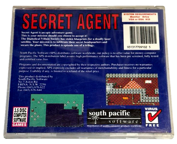 Secret Agent DOS PC 3.5 Floppy South Pacific Software