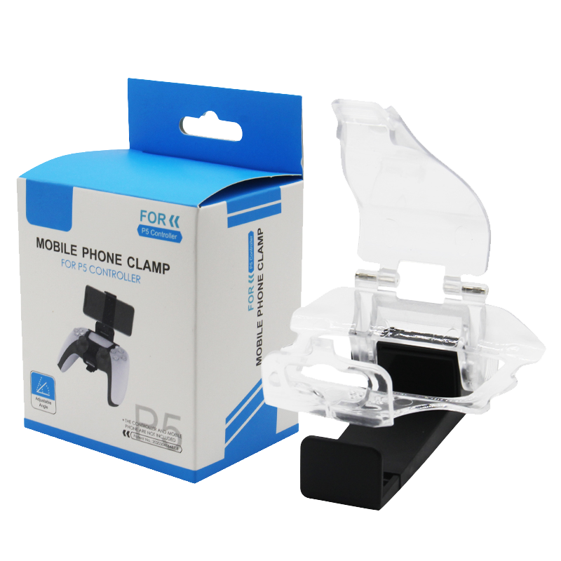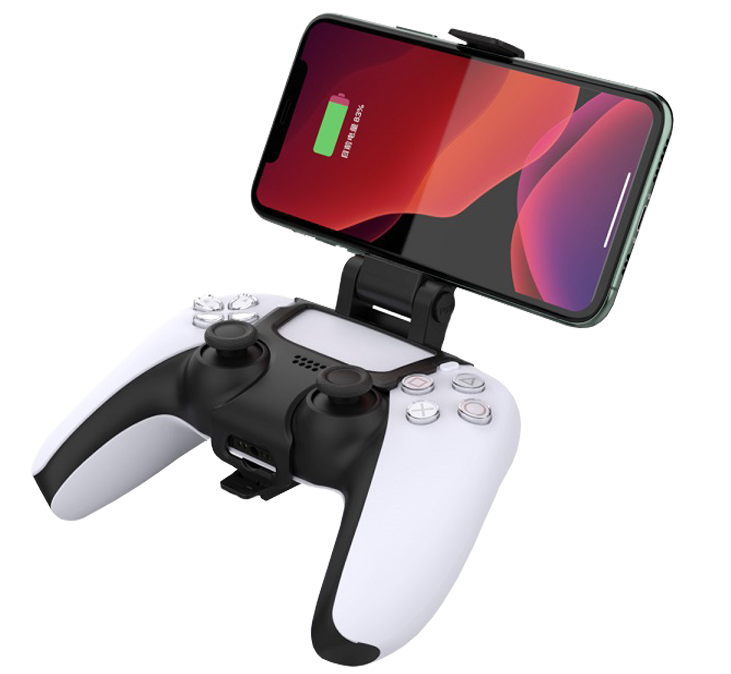 Mobile Phone Clamp for PS5 controllers with adjustable viewing angles.